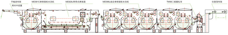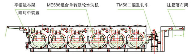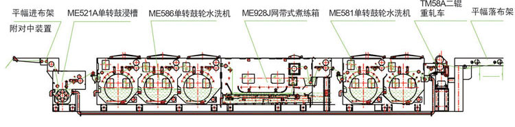 該機(jī)組可以滿足各類滌綸、滌氨、錦綸、錦氨、棉氨等各類面料的去油、平整、縮碼水洗工藝,克服了傳統(tǒng)工藝的質(zhì)量問題,同時(shí)大大節(jié)約了水和蒸汽等各項(xiàng)能耗成本。