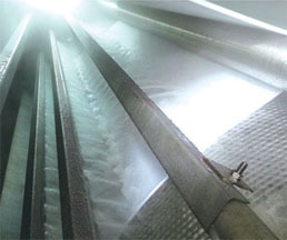 | 可調(diào)式的雙分絲展幅系統(tǒng),配合條幅平移紅外對中器,保證織物在低張力狀況下居中進(jìn)布,而不會(huì)產(chǎn)生拉升扭曲。 | 通過3-8分鐘堆置和大流量循環(huán)噴淋,使油脂和漿料充分乳化或膨化,并使織物在高溫和助劑的作用下,使織物均勻充分的收縮,以達(dá)到滿意的克重和縮率。 | |