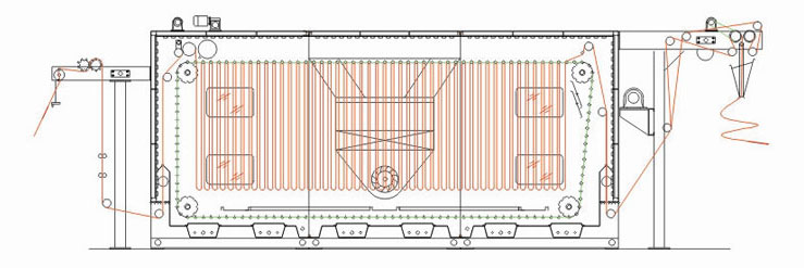 本機(jī)適用于純棉機(jī)織物、針織物、毛巾經(jīng)活性染料印花后的汽蒸固色工藝。